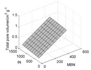 通過線性模型建立亞甲藍和碘值與總孔容的關(guān)系。使用由Kennard-Stone算法從39中選擇的10個樣本對表面進行建模(圖5)。