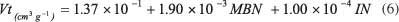 也使用二次模型將微孔體積描述為亞甲藍和碘值的函數(shù)。該模型在總共50個樣本的幫助下構(gòu)建,其中從KS算法中選擇了14個樣本進行校準(zhǔn)。校準(zhǔn)范圍為0.05至0.99cm 3 g -1。從2至427毫克克變化亞甲藍號-1和碘號碼變化從195至1670毫克克-1。建模導(dǎo)致表面擬合(圖3),由公式5描述: