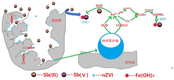 活性炭相對于納米級零價鐵來說吸附銻的效果差很多,但是由于其在多孔結(jié)構(gòu)和機械強度方面的特性,活性炭可用作支撐材料。活性炭載入納米級零價鐵來進(jìn)行改性處理,可以用于滲透性反應(yīng)屏障,以攔截受污染地下水中的銻或添加到家用過濾器中以去除銻(III)。