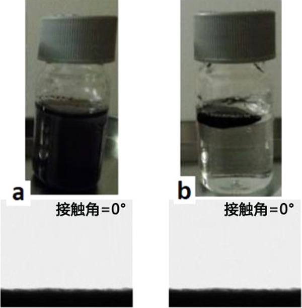 圖2:所制備的活性炭的兩親性質(zhì),(a)親水表面,(b)親油表面。