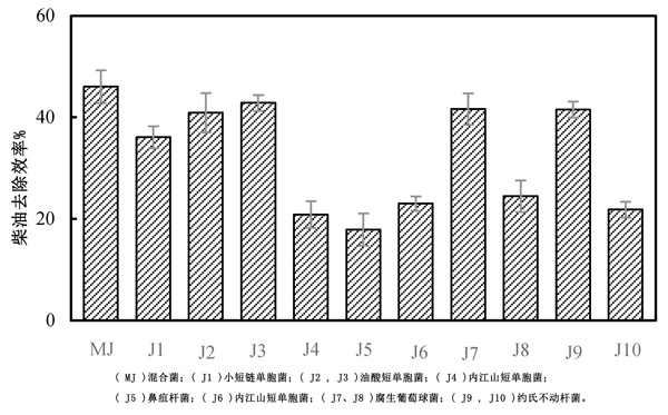 圖1:經(jīng)篩選的菌株培養(yǎng)后對柴油的去除率。