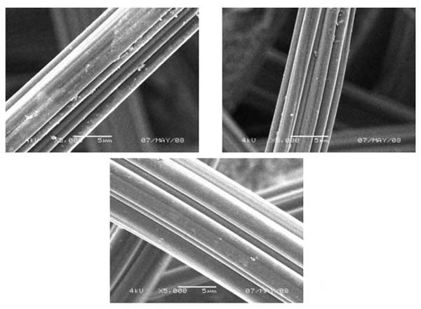 活性炭纖維的SEM圖像如圖1所示。活性炭-0的表面看起來(lái)很光滑,表面的斑點(diǎn)是吸附的污垢;钚蕴-HNO3表面的污垢最少,大部分污垢在硝酸浸漬過程中被浸出。這也說明硝酸氧化不會(huì)損傷纖維表面;钚蕴勘砻娴奈廴颈然钚蕴-0少,在硝化纖維浸漬過程中,一些雜質(zhì)被洗掉,這表明所有的硝化纖維素都已完全燃燒。通過比較SEM圖像,活性炭纖維表面在硝酸氧化和硝化纖維素燃燒后沒有被破壞。這證明了在活性炭纖維表面引入氮/氧原子是一種簡(jiǎn)單的方法,并且不會(huì)對(duì)表面造成損傷。