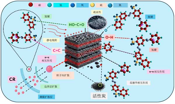 圖5:示意圖表示在吸附過程中SCAC和CR之間的關鍵相互作用。
