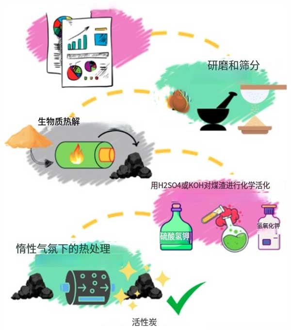 XRD和XRF分析:XRD顯示所有樣品具有非晶態(tài)石墨結(jié)構(gòu),熱解和活化條件對(duì)其結(jié)晶度影響較小。XRF分析表明,椰殼炭和活性炭中主要含有K(2.8-3.5%)、Ca(1.0-1.5%)和少量P、Mg等元素,H₂SO₄活化樣品中S含量略高(0.7%)。