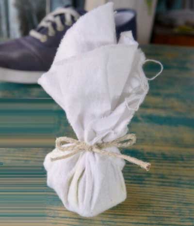 最后,把你的活性炭包裝放在布料的中心。將布料盡可能緊地拉緊,并在布料正上方系上一條繩子,將其緊貼在布料正方形內(nèi)。你可以使用任何你最喜歡的面料,只要記。翰剂喜灰癫蝗挥绊懟钚蕴康奈剑⑶,經(jīng)常使用你的面料會變臟,最好選一些不用的薄布料。活性炭在吸收氣味方面確實做得非常出色。