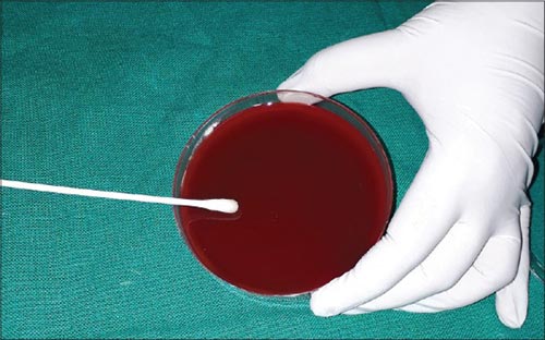 圖2:使用無菌棉簽將溶液涂抹在瓊脂平板上。