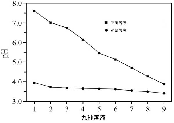 圖2:初始溶液和平衡溶液的pH用于在40℃下進(jìn)行的測(cè)試。