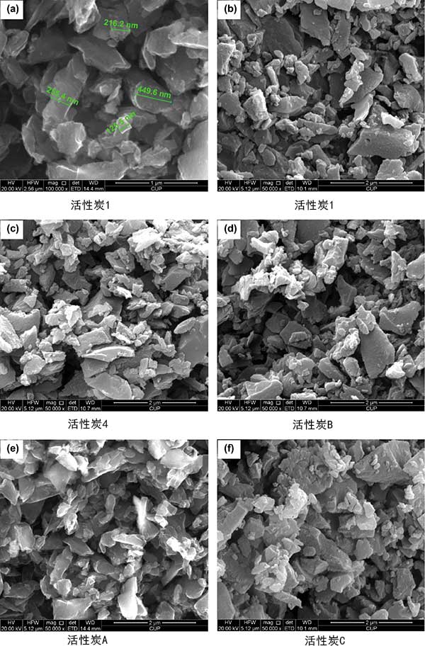 為了研究活性炭結(jié)構(gòu)對(duì)氣體混合物的分離性能的影響,七種活性炭,即活性炭1、2、3、4和活性炭A、B、C。評(píng)估了SEM圖像及其顆粒分布示于圖2和3中。對(duì)比了活性炭的比表面積,微孔體積,孔徑,中值粒徑和骨架密度等。在這些活性炭中,1234衍生自相同類型的活性炭,并具有相同的比表面積,微孔體積,孔徑和骨架密度,但具有不同的粒徑。這類活性炭的中值粒徑分別為1.14、1.41、2.07和6.18μm。在活性炭中,粒徑?jīng)Q定了微孔的利用率,孔徑控制了氣體分子進(jìn)入活性炭孔隙的可能性,比表面積和孔隙體積決定了存儲(chǔ)容量。這種孔徑和粒徑比較適合分離氣體混合物,但是,對(duì)于孔體積或比表面積,CO 2吸收越大越好。下面我們選擇兩種氣體混合物來(lái)評(píng)估活性炭結(jié)構(gòu)對(duì)分離性能的影響,即兩種碳?xì)浔壤煌幕旌蠚怏w。將這兩種進(jìn)料氣體混合物與七種活性炭進(jìn)行分離實(shí)驗(yàn)。實(shí)驗(yàn)條件溫度和初始?jí)毫Ψ謩e為10℃和約2.0MPa。