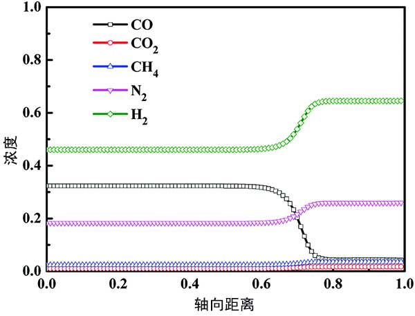 活性炭吸附步驟后CO,CO 2,CH 4,N 2和H 2的軸向濃度分布在圖4標(biāo)記?梢钥闯觯钚蕴课讲襟E后,Z/H=0.00-0.60的吸附床達(dá)到飽和,CO,CO 2,CH 4,N 2和H 2的濃度不隨軸向距離變化床的一部分,與進(jìn)料氣中各組分的濃度一致。并且在Z/H的不飽和吸附床中>0.60,隨著床軸距的增加,CO濃度逐漸降低,其他成分濃度逐漸增加。最后,所有組分的濃度趨于穩(wěn)定。