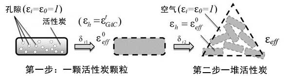圖1:用于導(dǎo)出介電常數(shù)和活性炭孔隙體積之間關(guān)系的示意圖。