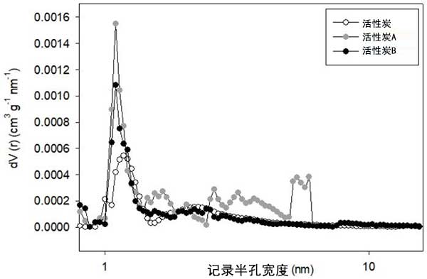 可以觀察到,由于在解吸分支中形成的小磁滯回線,活性炭普遍具有微孔性,這表明毛細(xì)孔凝結(jié)很小,因此中孔的量較少。通過(guò)QSDFT方法獲得這幾種活性炭的總體積和孔徑分布,假設(shè)孔為狹縫圓柱形。圖2顯示了三種研究的活性炭的孔徑分布,可以確認(rèn),對(duì)于所有活性炭樣品,主要存在于1.0-1.5nm區(qū)域的微孔,而對(duì)于活性炭A,也可以檢測(cè)到少量的中孔。