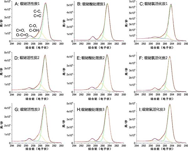 載銠活性炭催化劑的X射線(xiàn)光電子能譜