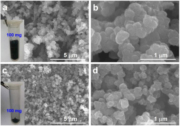 圖2中的插圖是兩種活性炭的數(shù)碼照片。當(dāng)將相同量的兩種活性炭(100 mg)放入相同體積的離心管(5 mL)中時(shí),活性炭-1粉末占據(jù)的體積更大,這表明他的密度較低。通過掃描電子顯微鏡研究了他們的形態(tài)。如圖2所示可以看出,與原始材料相比,兩種活性炭的外觀變化不大。但是,它們的粒徑不同。顯然,活性炭-1的顆粒大于活性炭-2的顆粒。這些顆粒聚集在一起并形成多孔形態(tài);钚蕴-1具有更大的孔徑,表明較疏松的多孔結(jié)構(gòu)。