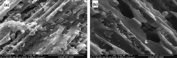 進(jìn)行了近距離分析以活性炭的基礎(chǔ)性質(zhì)。它包括水分的百分比,揮發(fā)物的百分比,灰分的量以及有機(jī)材料中可用的固定碳。再通過(guò)SEM檢測(cè)強(qiáng)電子束轟擊活性炭樣本時(shí)從樣本表面散射的電子來(lái)幫助分析詳細(xì)的高分辨率表面圖像。與SEM一起,EDS可以通過(guò)深入分析其表面來(lái)極大地幫助獲取有關(guān)特定樣品所含化學(xué)物質(zhì)的信息。在本次測(cè)試中,通過(guò)使用SEM和EDS,分析了在吸附機(jī)理過(guò)程中氟吸收前后的活性炭。它有助于理解紋理形態(tài)及其在吸附中的意義。數(shù)據(jù)如圖1所示。結(jié)果表明,在氟化物吸附之前,活性炭表面具有大量的粗糙度,隨后在氟化物吸收中會(huì)降低,并使表面光滑并降低了孔隙率。