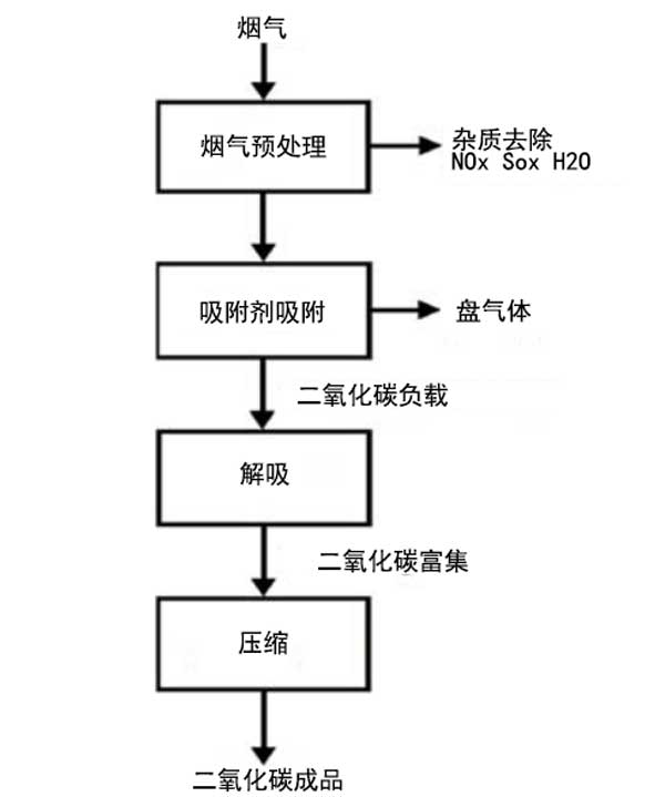 二氧化碳的吸附技術(shù)的簡(jiǎn)化圖在圖二顯示。首先將煙氣中的水分,硫和氮氧化物凈化。然后,所制備的氣體進(jìn)入使用固態(tài)吸附劑的吸附階段,例如活性炭,沸石,金屬有機(jī)骨架,多孔聚合物,基于堿金屬和胺的碳酸鹽的固體材料,碳球等。之后,吸附劑進(jìn)入解吸階段,在此階段釋放出富含CO2的氣體混合物,然后在壓力下將其壓縮。該技術(shù)的優(yōu)點(diǎn)是二氧化碳萃取效率高,再生成本低以及吸附劑操作的穩(wěn)定性。活性炭對(duì)CO2和N2的吸附能力很高,具有不同于沸石的大比表面積,并且還可以在潮濕條件下工作。而且,活性炭比沸石具有更低的吸附熱,因此它們可以更容易地再生。因此,在25°C和1bar的溫度下,活性炭的吸附熱為3kJ,而沸石為30kJ。收集二氧化碳的吸附劑質(zhì)量的重要指標(biāo)之一是二氧化碳的吸附量;旧,在靜態(tài)條件下和動(dòng)態(tài)條件下都進(jìn)行吸附容量的研究。