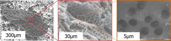圖2:載銀活性炭表面結(jié)構(gòu)的SEM圖像。